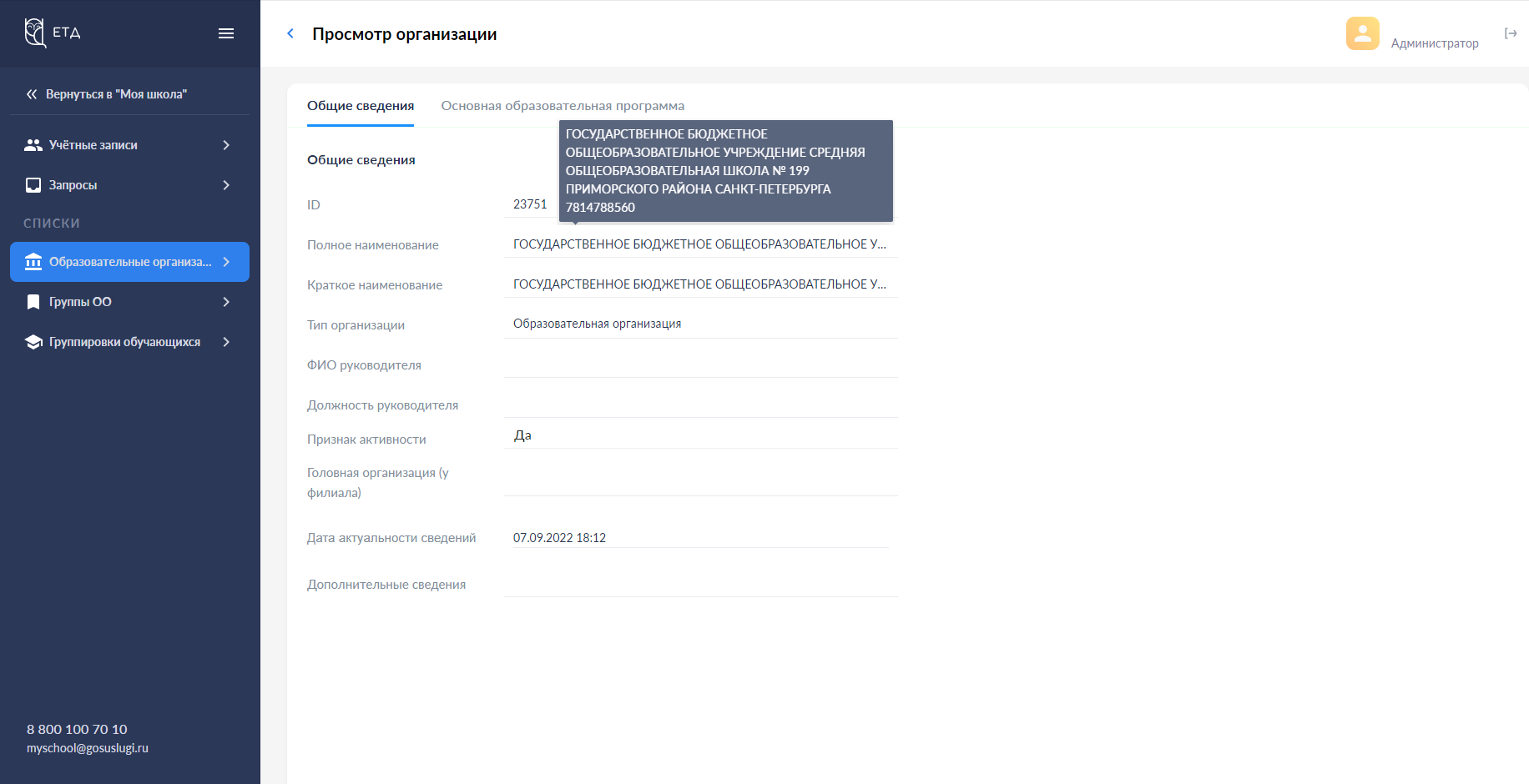- Информация о наличии личного кабинета ФГИС "МояШкола"