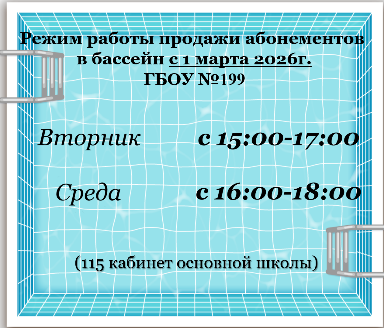Продажа абонементов в наш бассейн проходит без предварительной записи по следующему расписанию: