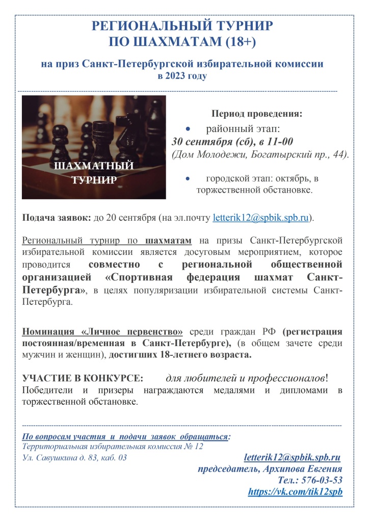 Региональный турнир по шахматам (18+) на приз Санкт-Петербургской избирательной комиссии в 2023 году