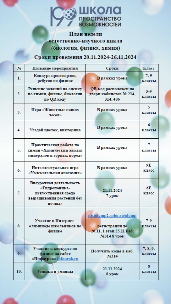 С 20 ноября в ГБОУ школа №199 стартует предметная неделя естественных (биология, химия, физика) наук.
