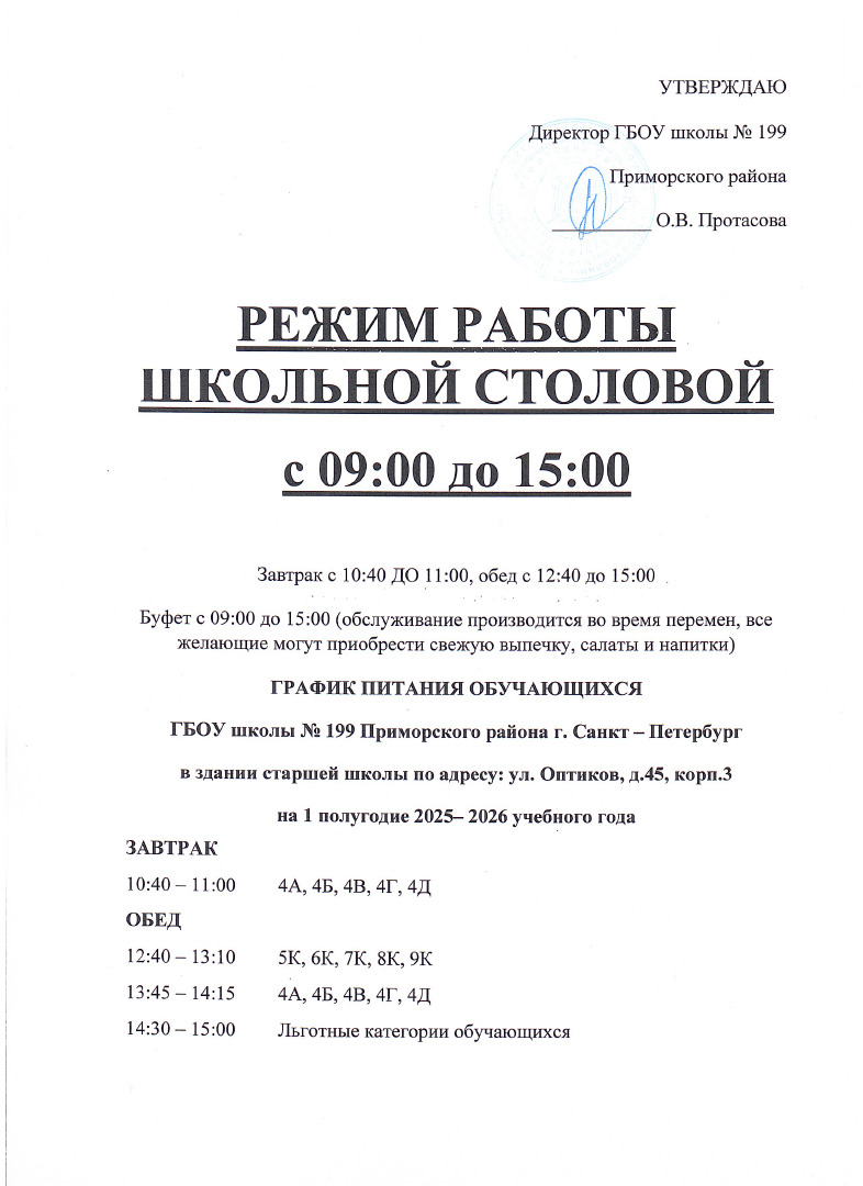 - Рекомендуемый график посещения школьной столовой Оптиков (старшая школа)